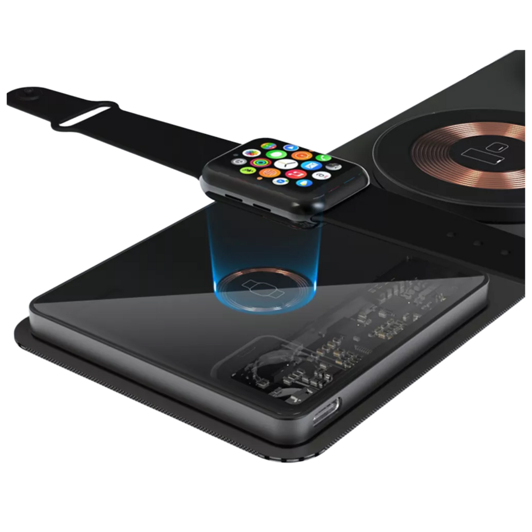 Hlavnou výhodou tejto bezdrôtovej nabíjačky 3 v 1 je jej veľmi kompaktné spracovanie, ktoré umožňuje bezproblémové prenášanie.
