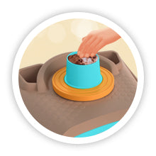- Reálne hrnčiarske kolo: Umožňuje deťom pracovať ako skutoční hrnčiari. Pre optimálny výkon motora je bicykel určený iba na použitie s dodaným napájacím adaptérom.