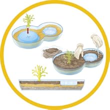 - Kolobeh vody v praxi : Sada umožňuje deťom pozorovať jeden z najdôležitejších prírodných cyklov – kolobeh vody. Naplnením jazierka vodou môžu sledovať, ako sa voda vyparuje a kondenzuje, čo im pomáha lepšie pochopiť procesy odparovania a zrážania v prírode.