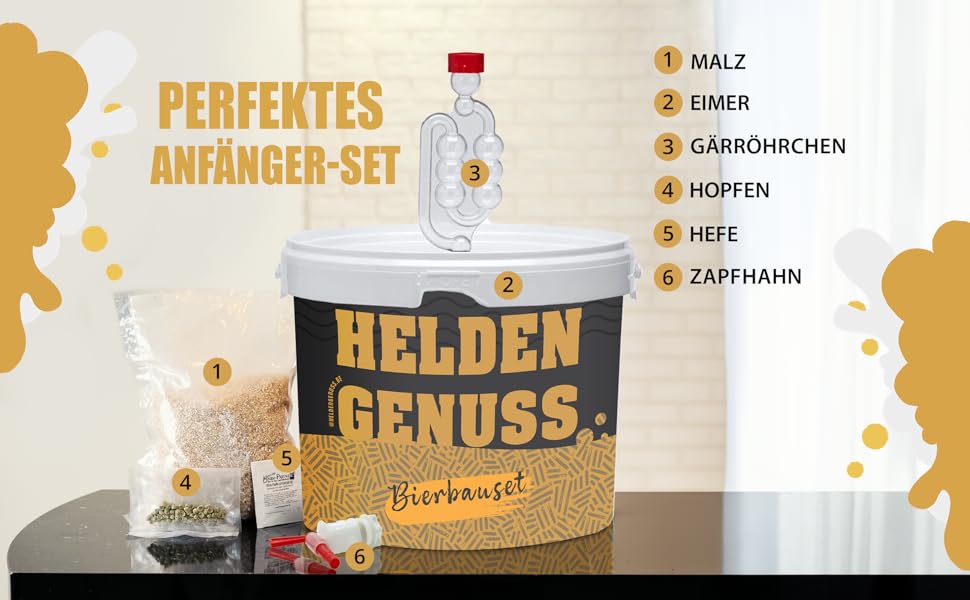 Zažite pravé pivovarnícke dobrodružstvo so sadou Heldengenuss. Tento kompletný domáci pivovar vám umožní uvariť si až 5 litrov lahodného ležiaka Pils priamo vo vlastnej kuchyni. Nejedná sa o obyčajnú instantnú zmes - s touto sadou prejdete skutočným procesom varenia piva, vrátane kvasenia.