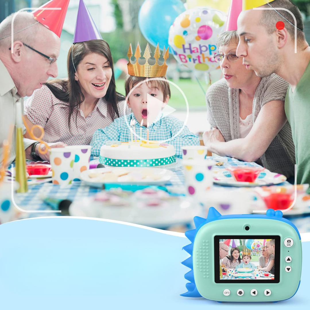HiMont detská kamera je vybavená 20 MP predným aj zadným objektívom, ktorý umožňuje zhotovovať fotografie a videá kedykoľvek a kdekoľvek, aj bez tlačového papiera. Vysoké rozlíšenie farebných snímok a 1080P videa sa automaticky ukladá na 32GB pamäťovú kartu. K dispozícii je aj funkcia 10x digitálneho zoomu (32GB pamäťová karta je súčasťou balenia).
