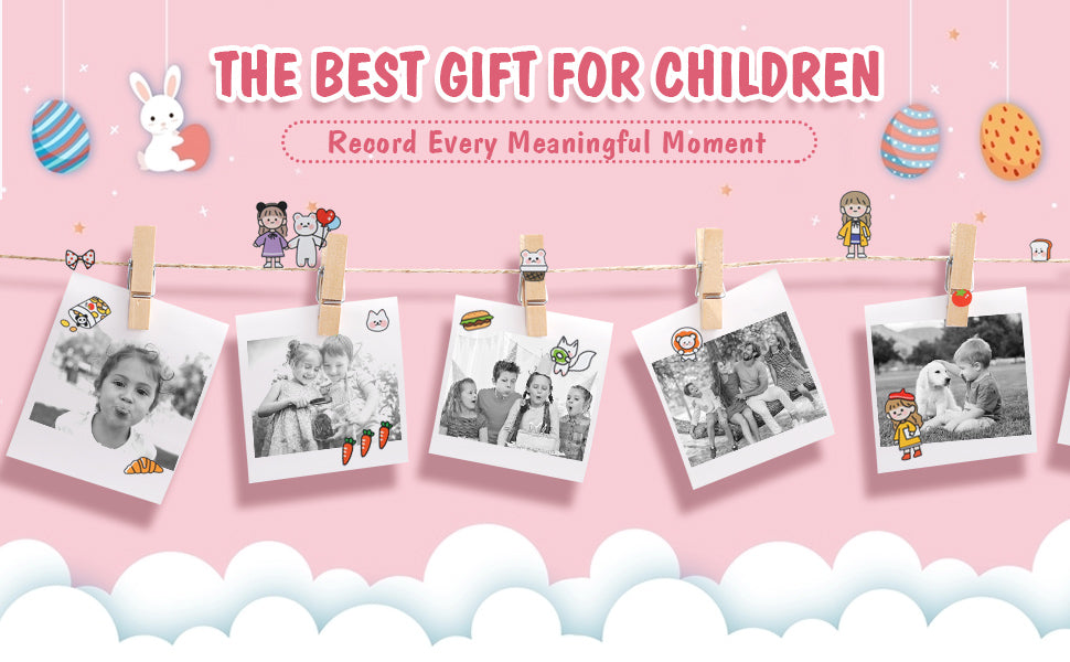 Tento detský fotoaparát ponúka 6 funkcií, ako sú: farebná fotografia, video vo vysokom rozlíšení, čiernobiela tlač, hudba, prehrávanie a hry, čo umožňuje deťom ľahko sa baviť a používať kameru. Kamera má tiež 6 rôznych farebných filtrov, 20 rôznych kreslených rámčekov a postavičiek, atď, a umožňuje kontinuálne snímanie a časovač.