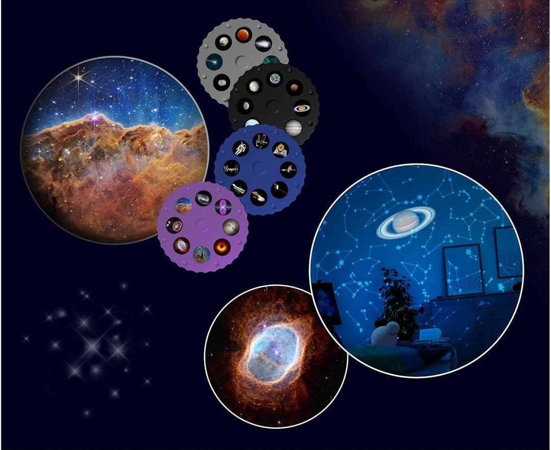 🔭 32 obrázkov vesmíru – štyri výmenné disky s vysoko detailnými snímkami planét, galaxií a hmlovín.
