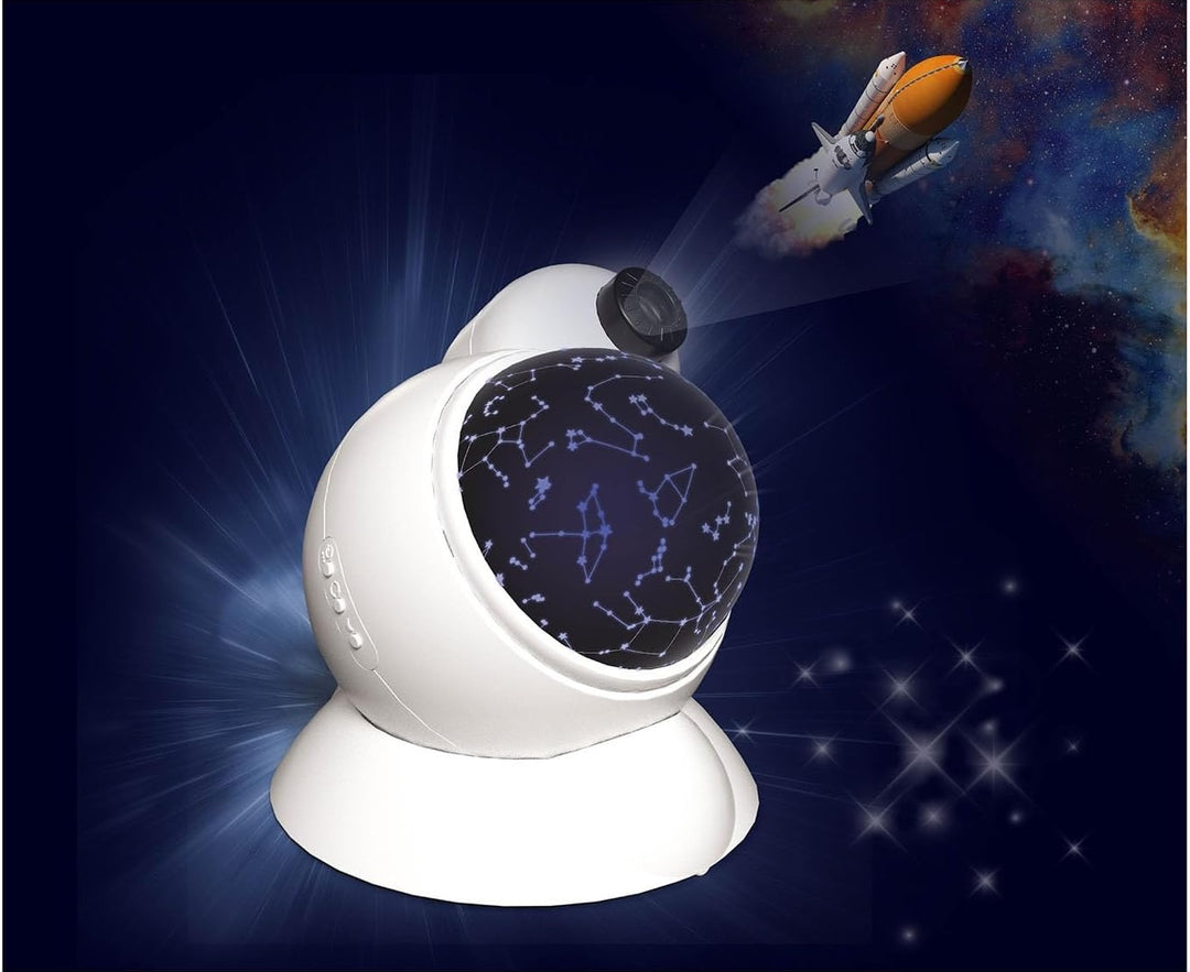 Objavte krásy vesmíru priamo z detskej izby! Domáce planetárium KOSMOS s dvojitým projektorom, 32 vesmírnymi snímkami a tromi hviezdnymi mapami prináša fascinujúci pohľad na planéty, galaxie i súhvezdia. S funkciou otáčania, časovačom a napájaním cez USB je ideálny aj ako nočné svetlo.