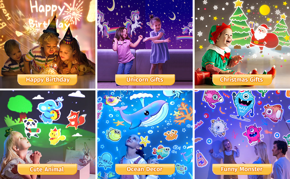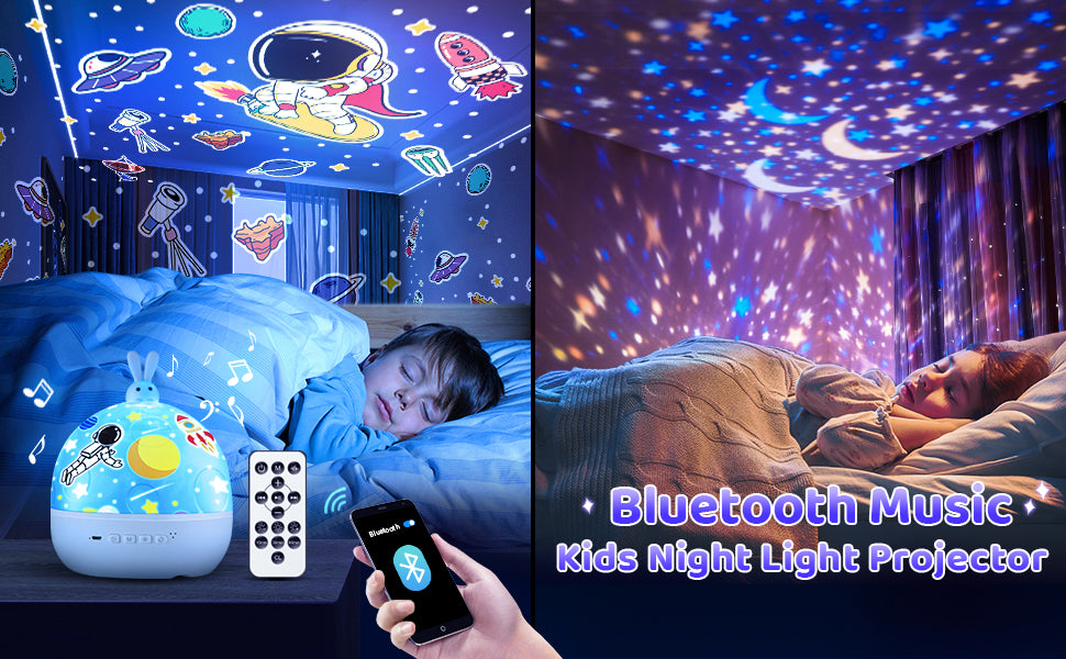 - Kúzelná projekcia: Projektor ponúka nádherné motívy jednorožcov, morských víl, hviezd a ďalších rozprávkových prvkov, ktoré sa premietajú na strop a steny detskej izby.