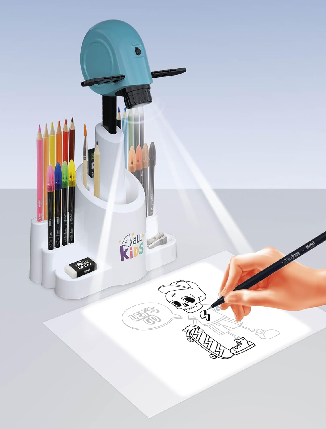 Projektor umožňuje dvojí režim – nejprve promítá černobílý obrázek pro snadné obkreslení obrysů, poté barevný motiv jako vzor pro vybarvení. Děti se tak přirozeně učí proporce, barvy i stínování a přitom si užívají kreativní hru.