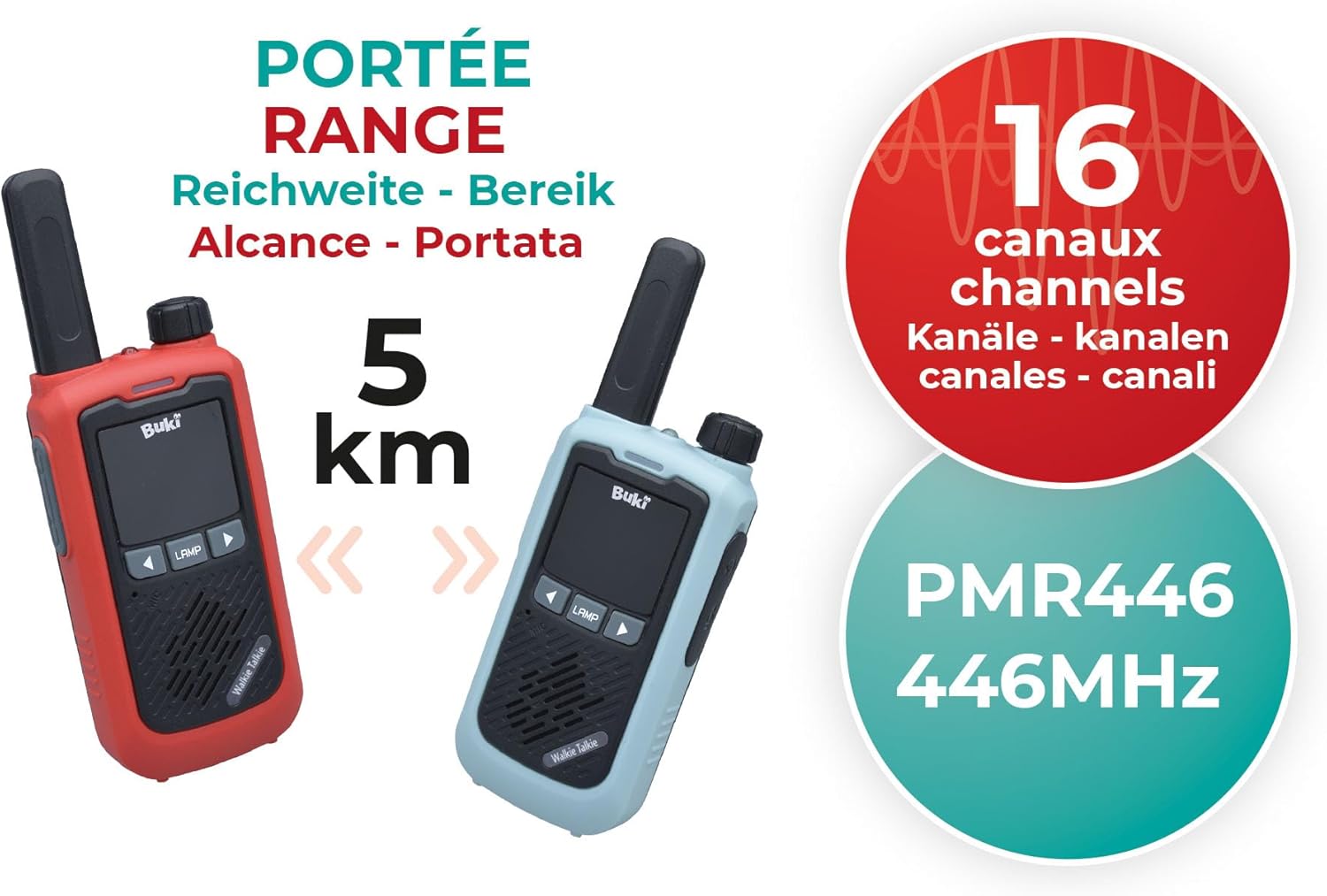Vysílačky BUKI TW05 jsou ideálním parťákem pro dětská dobrodružství i rodinné výlety. Nabízejí dosah až 5 kilometrů, 16 komunikačních kanálů a kvalitní přenos zvuku díky vylepšenému mikrofonu a reproduktoru.