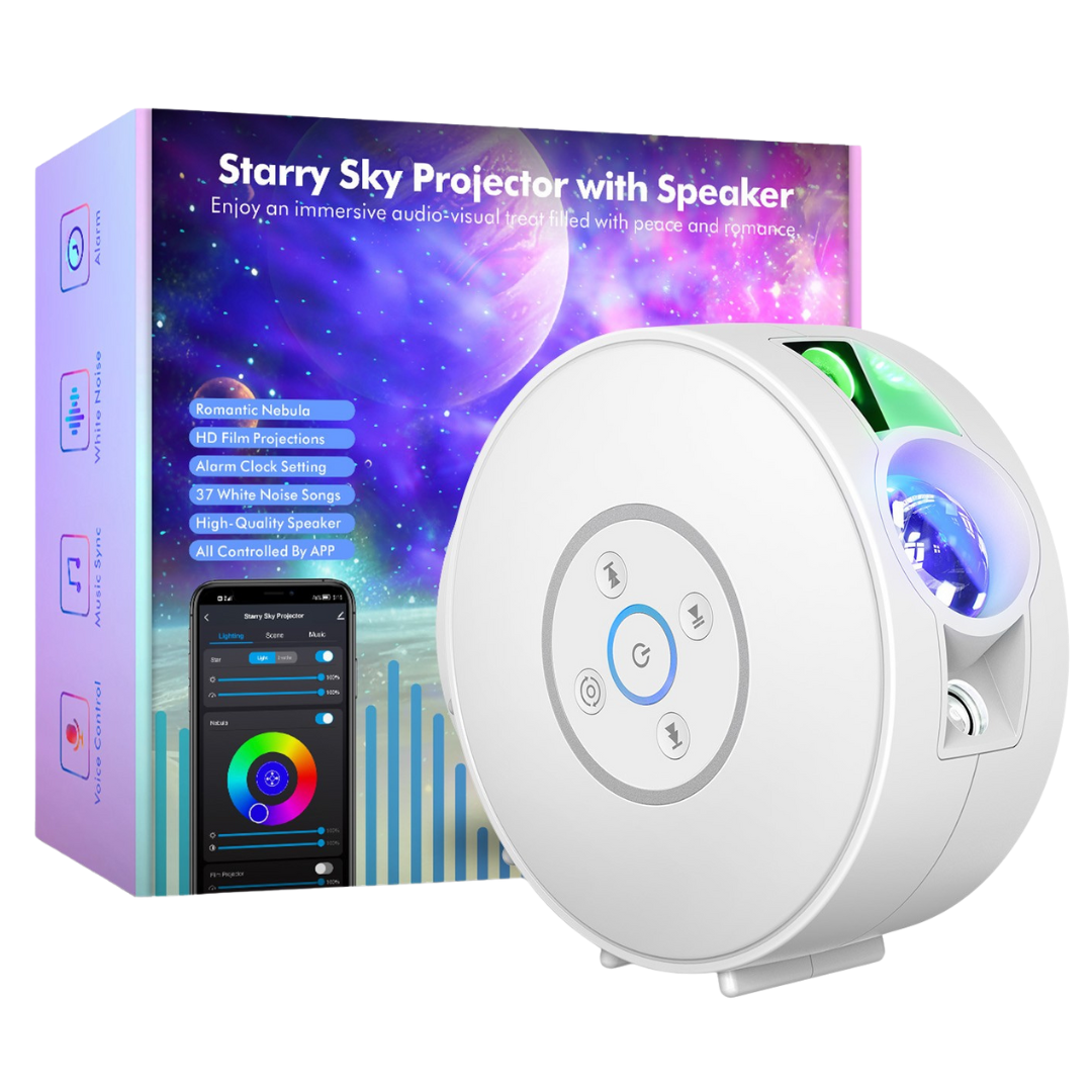 Projektor noční oblohy – 6 kazet se snímky, Bluetooth reproduktor, ovládání pomocí aplikace
