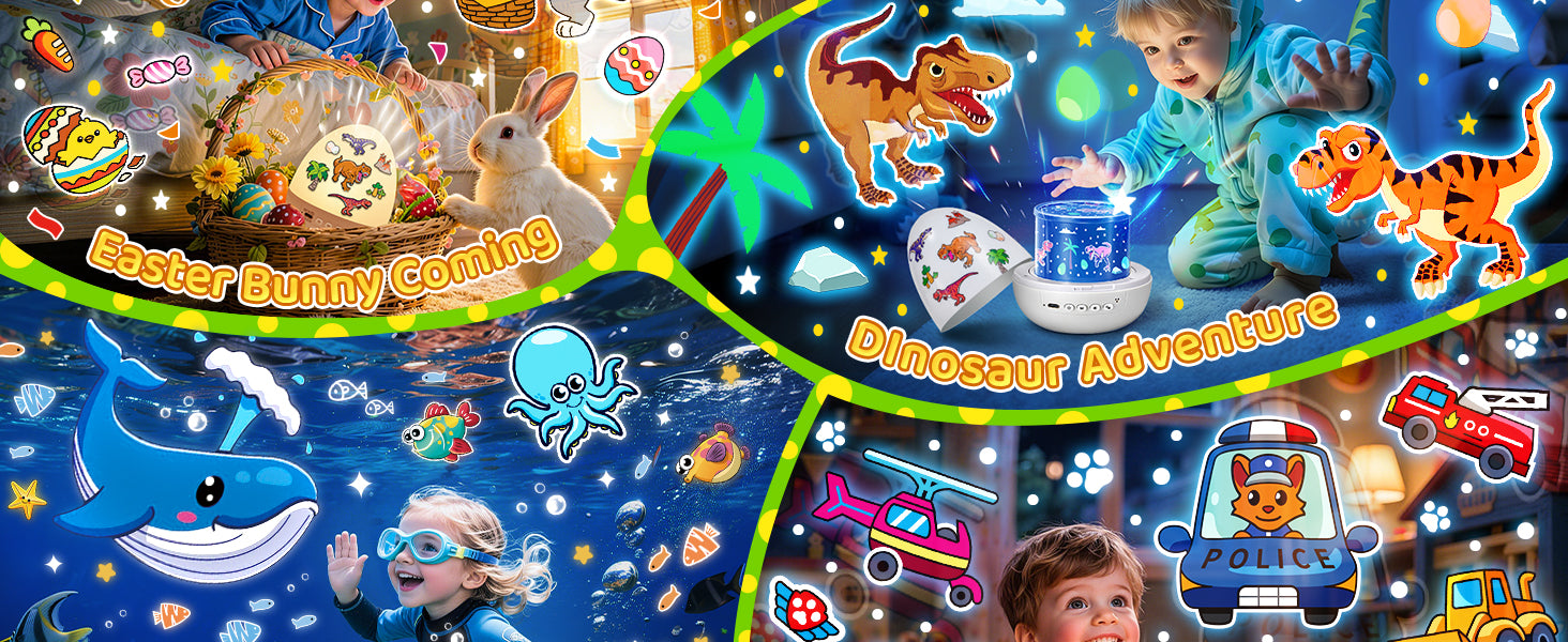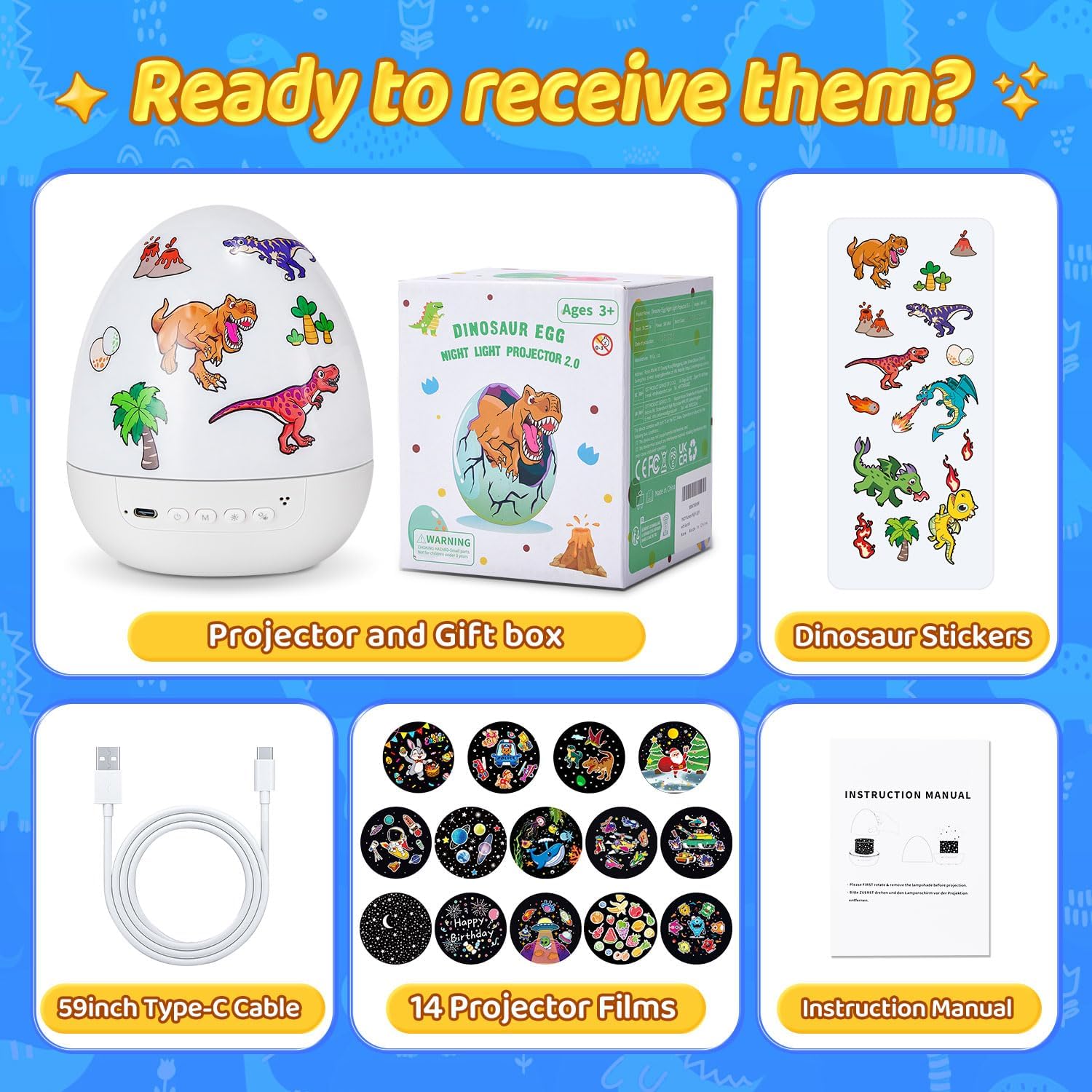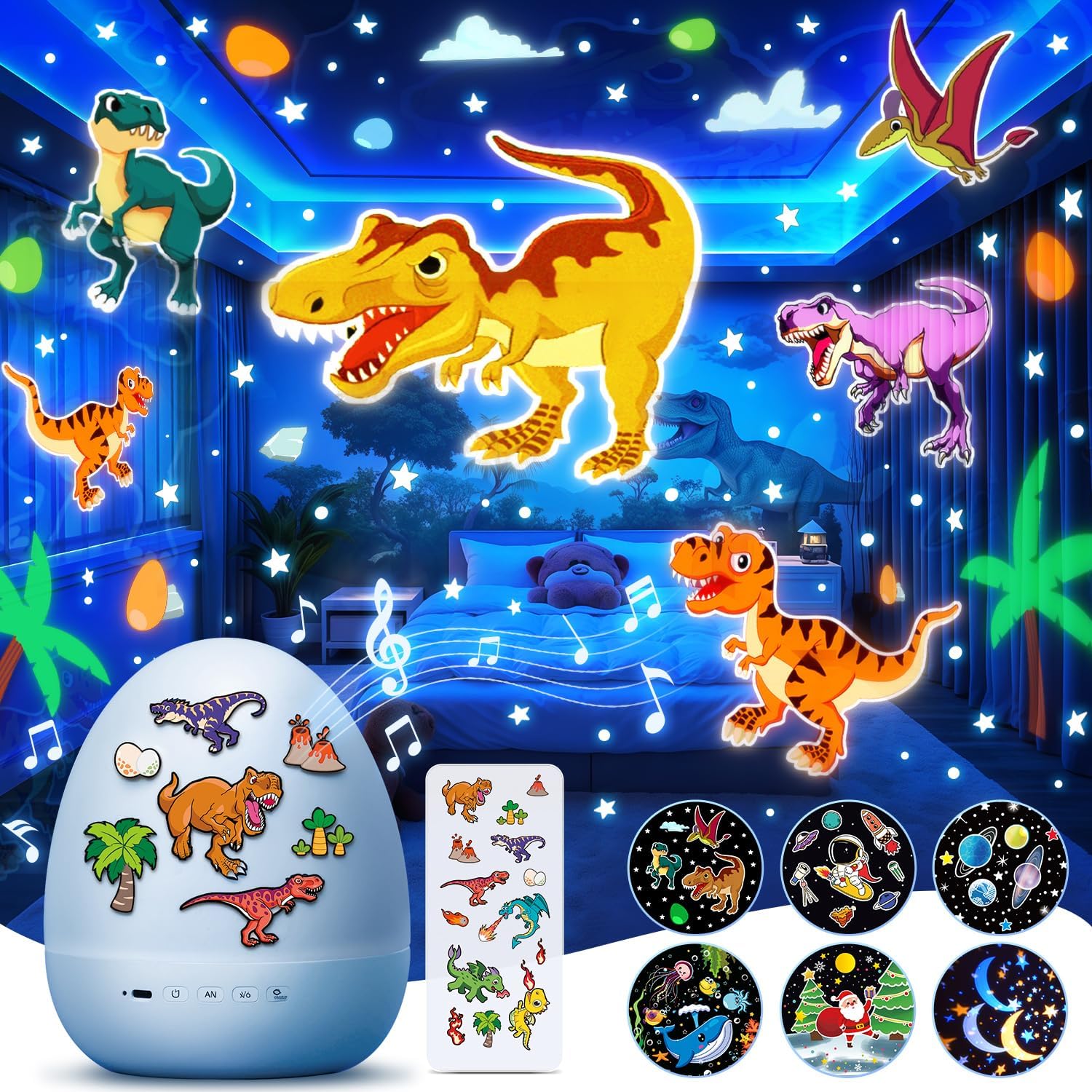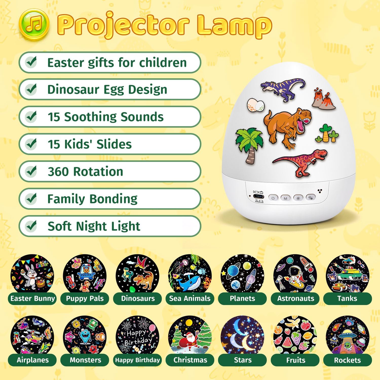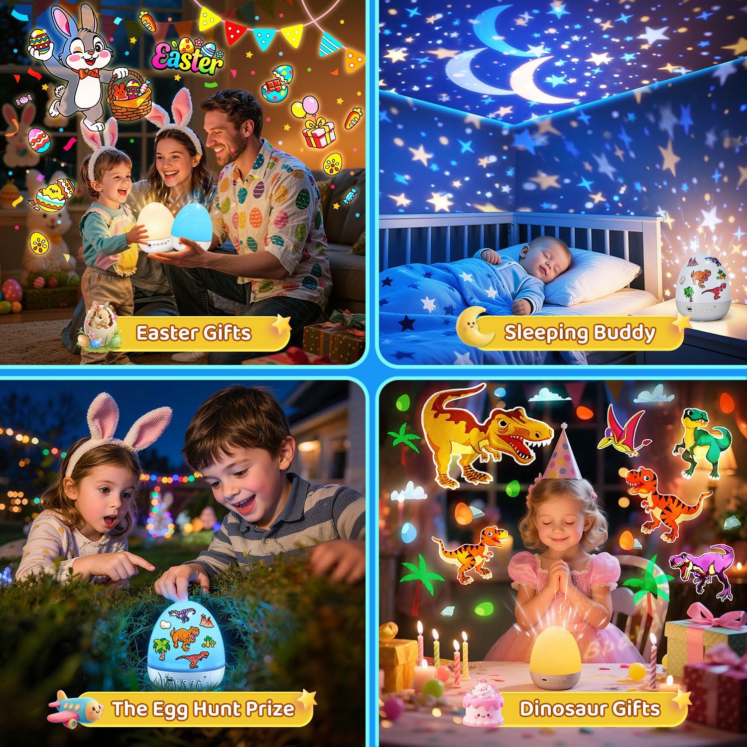 Proměňte dětský pokoj v kouzelný svět plný dinosaurů, hvězd a dobrodružství! Tento originální projektor ve tvaru dinosauřího vajíčka není jen lampička, ale také kreativní sada a uklidňující pomocník pro usínání. Děti si mohou vajíčko samy ozdobit, promítat pohádkové motivy a usínat za doprovodu jemné hudby.