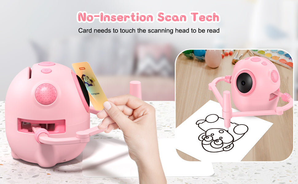 - Čti a kresli: Stačí vložit kartu, sledovat kroky a nechat robota ukázat, jak obrázek vzniká – děti se učí kreslit hravou formou.