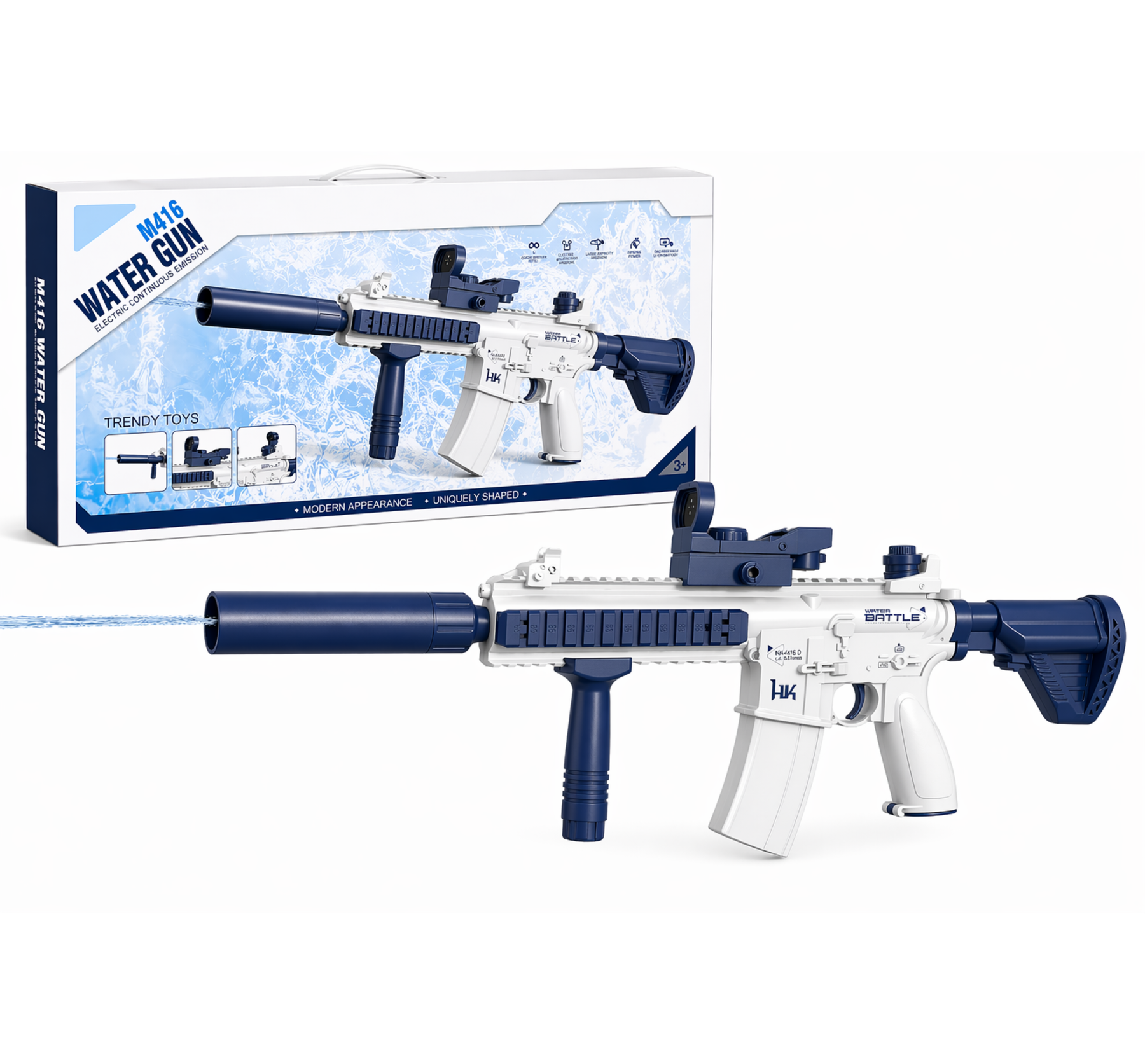 S touto elektrickou vodnou pištoľou M416 zažijete skutočnú akciu! Vďaka funkcii plne automatického strieľania stačí iba stlačiť spúšť – žiadne pumpovanie, len plynulý prúd vody s každým stlačením.