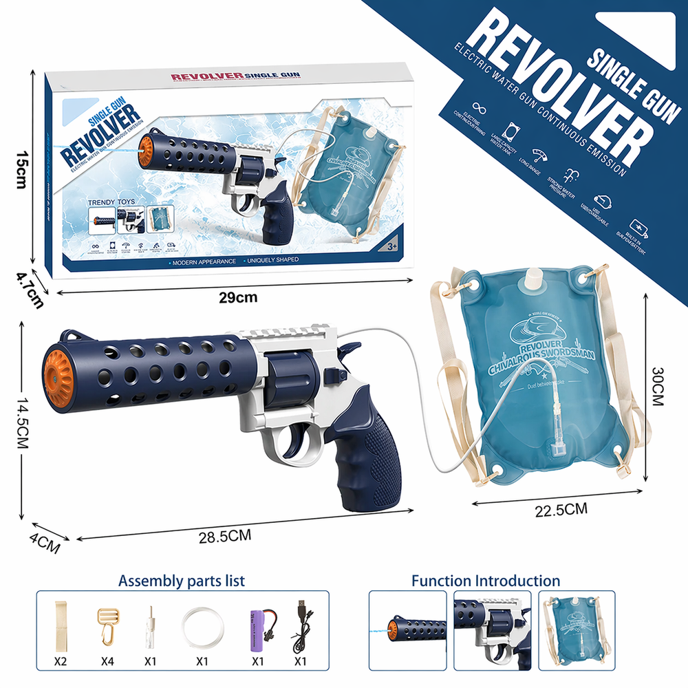 REVOLVER Elektrická vodná pištoľ | 1,2L zásobník, 6–8m dostrel, automatické strieľanie