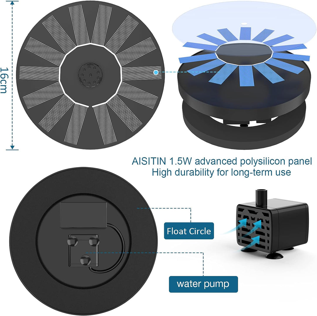 - Automatický provoz: Fontána se automaticky zapne při dostatečném slunečním svitu a vypne se, když je slunce slabé nebo zapadá, což zajišťuje její dlouhou životnost a efektivitu.