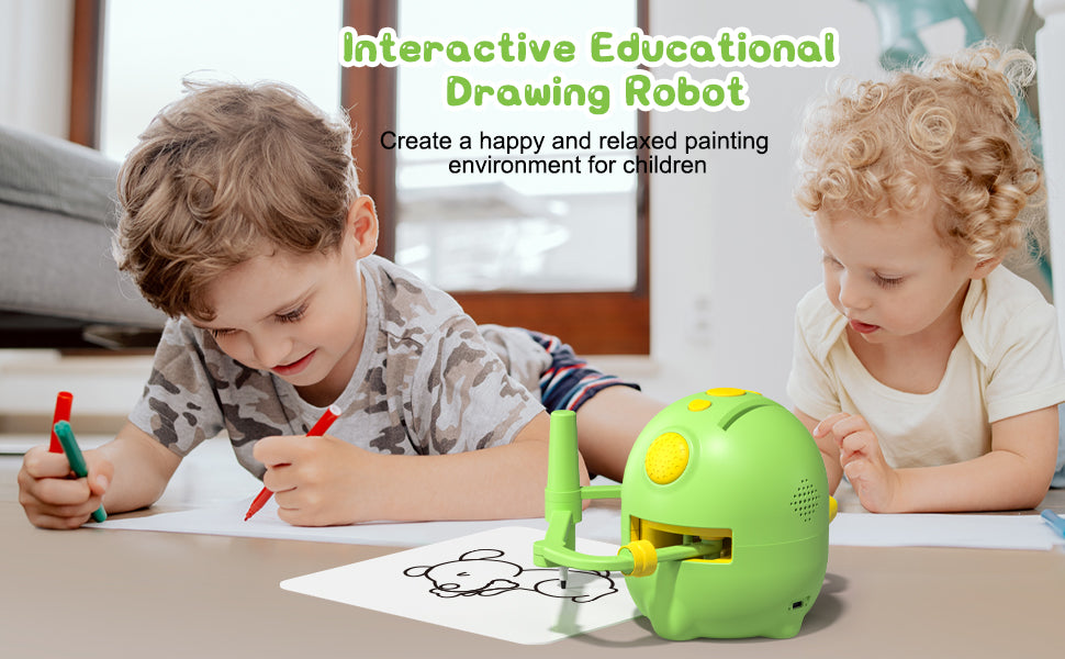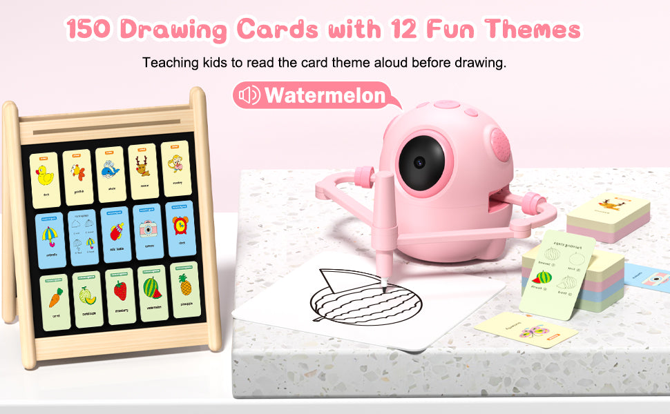 Objevte nekonečné možnosti tvoření s malovacím robotem Thinkaroo, který přináší dětem více než jen zábavu. S 150 barevnými kartami rozdělenými do 12 kreativních témat se učení mění ve hru plnou fantazie, barev a objevování.