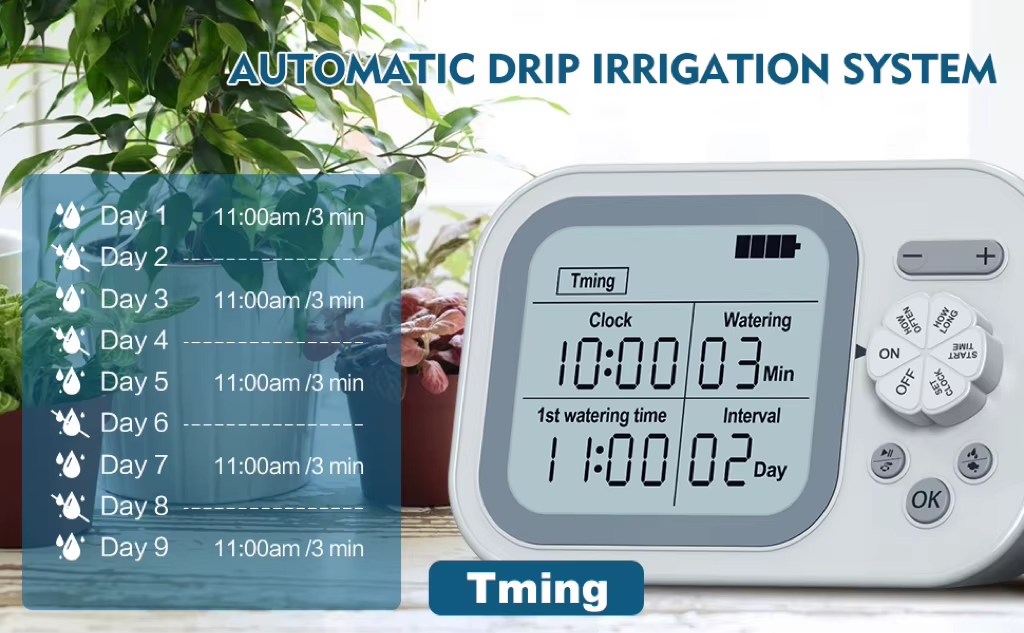 • Skvělé pro pravidelnou a přesnou závlahu, ideální během dovolené nebo při každodenní rutině.