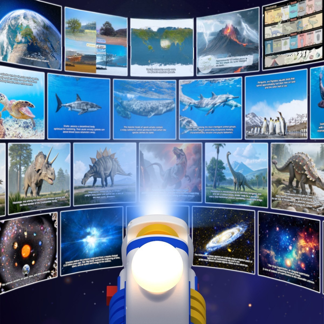 Součástí projektoru jsou tematické projekční kotoučky, které děti zavedou do různých světů. Každý večer může být jiný – stačí vyměnit kotouček a dobrodružství začíná. Děti nejsou jen posluchači, ale mají pocit, že jsou součástí příběhu.