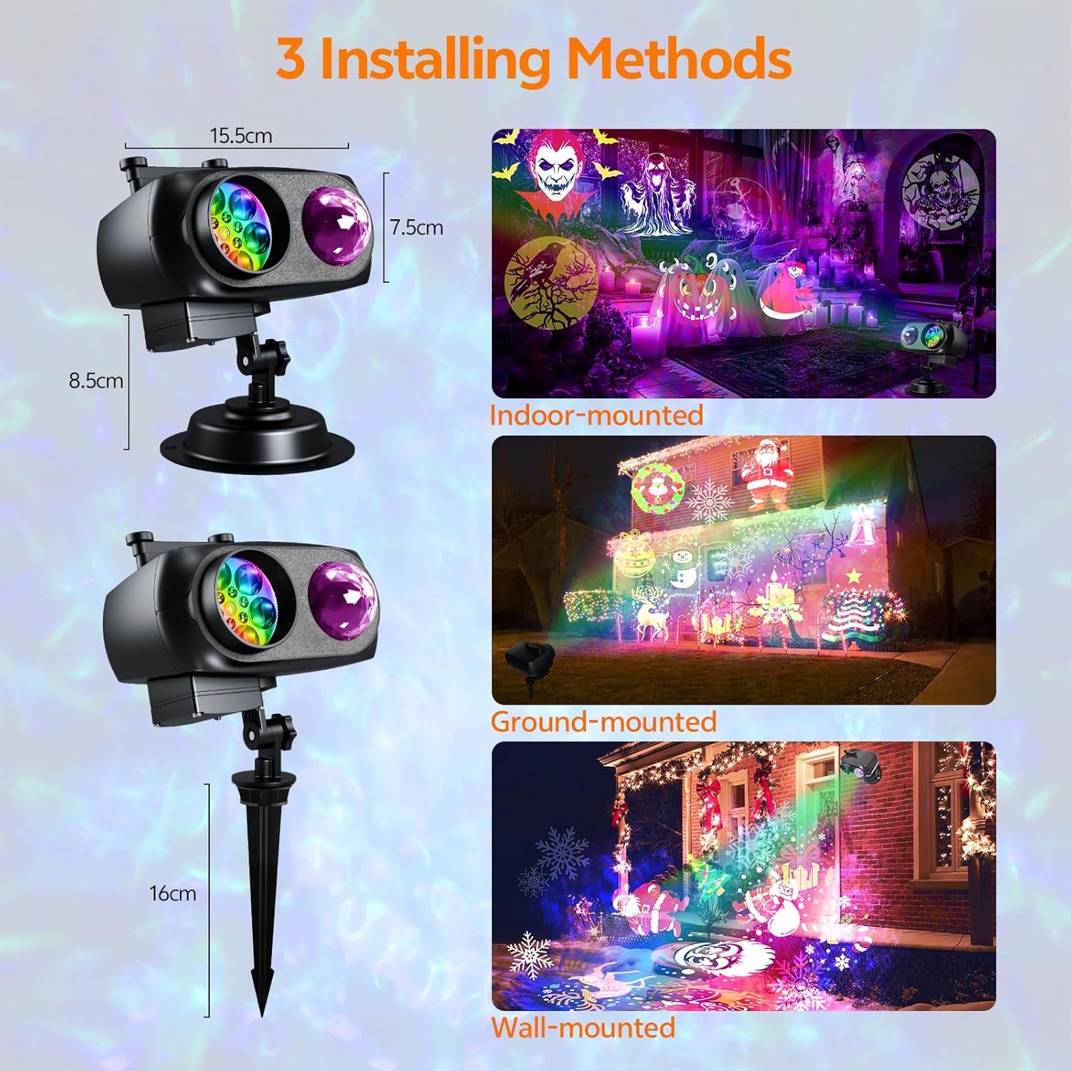 MOSSNDAR Vonkajší projektor s motívmi – 12 filmov, 10 efektov morských vĺn, diaľkové ovládanie