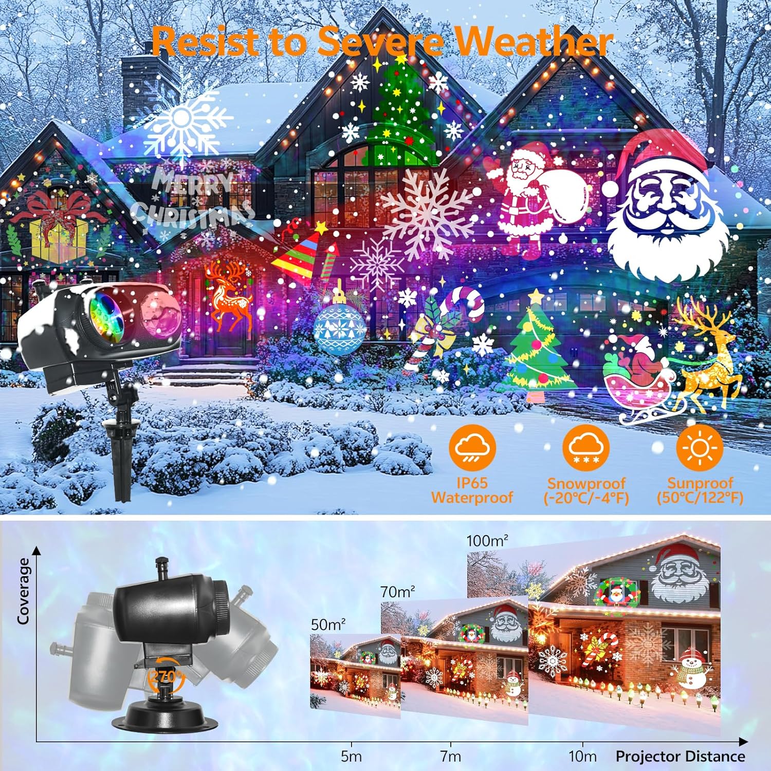 Projektor je vybavený vysoko kvalitnou LED lampou a HD šošovkou , ktoré zaisťujú jasný a živý obraz. Kombinuje 10 farebných efektov morských vĺn s pohyblivými motívmi – napríklad duchmi tancujúcimi v aurorách alebo vianočnými sobmi surfujúcimi na vlnách.